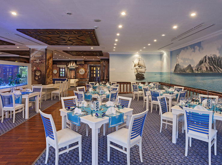 - Рыбный A'la Carte ресторан "Aqua Blue" на 50 персон - Часы работы 19:00 - 21:30