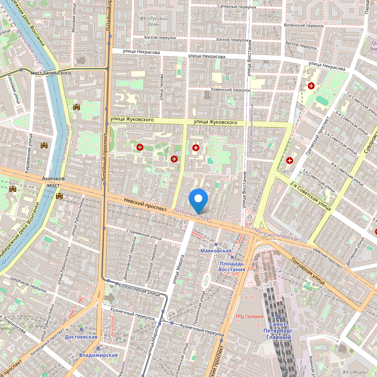 Наш отель расположен в пешей доступности от главных достопримечательностей Санкт-Петербурга: Эрмитажа и Дворцовой площади, Русского музея, Исаакиевского и Казанского соборов, Мариинского и Александринского театров. В непосредственной близости с отелем находятся музей Ф.М. Достоевского и Малый Драматический Театр.