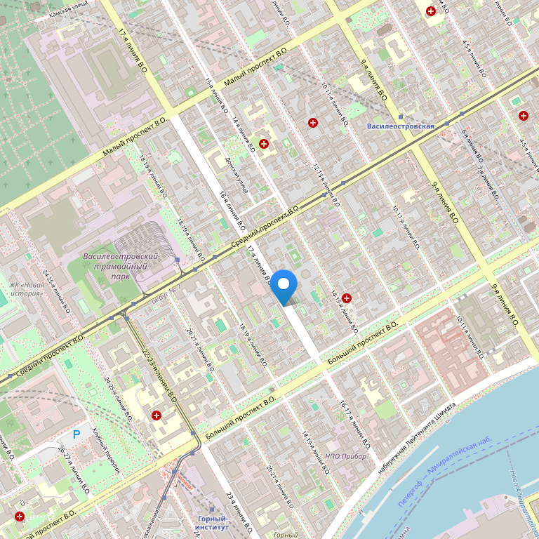 Отель располагается в историческом и деловом центре Васильевского острова, а также в пешей доступности от станции метро Василеостровская. Андреевский собор, Санкт-Петербургский Государственный Университет и Петропавловская крепость находятся в доступной близости от отеля. Расстояние от Аэропорта Пулково 1 – 23 км, от Пулково 2 – 19 км, от Московского вокзала – 8 км. Отель прекрасно подойдёт и для гостей, главной целью, которых является посещение выставочного комплекса Ленэкспо или обучение в ЦНТИ «Прогресс».