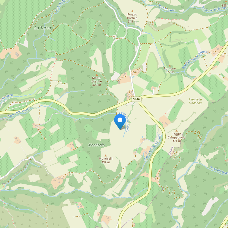 Отель расположен в зеленой загородной местности в окрестностях Сована, средневековой деревушке в самом центре археологического парка. Ферма занимает площадь 70 гектаров. Горячие источники Сатурия находятся в 15 км от отеля, озеро Больсена в 30 км, Сорано в 7 м.