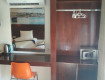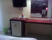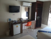 Номер небольшой,но все по делу,большая и удобная кровать,холодильник,чайник,фен,два стакана,телевизор,сейф-все было.
