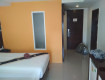 Просторные номера с большой кроватью. Есть чайник.Был фен, но еле еле работал. Фен не во всех номерах. Шум слышен, но терпимо с закрытым окном. Кондей прям над головой.Мини бар пустой.