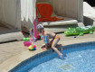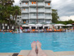 Номер: стандартная комната, телевизор,кондиционер, прикроватные тумбочки, зеркало, перед ним стол( "трельяж"-назову его так), мини бар, сейф, все чисто. Вид у нас был на бассейн, где проводится...