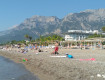 До пляжа идти 2-3 мин. Пляж песочный, около воды разные камни -не крупные. Дно каменное, плавают рыбки. Играем в волейбол на пляже. На пляже есть магазинчик с мороженым, напитками и чипсами.