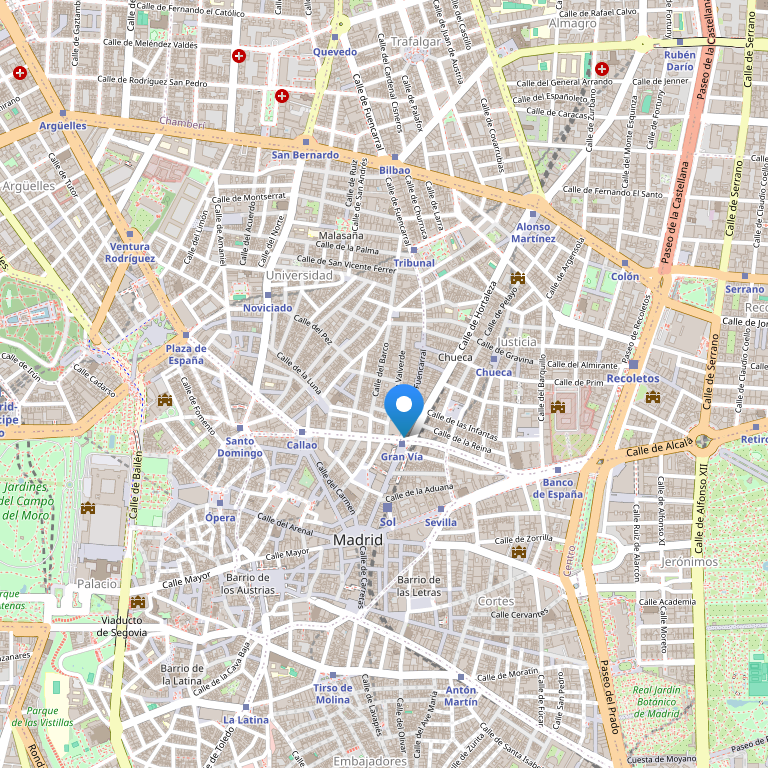 Отель расположен на знаменитой Гран Виа (Gran Via), в нескольких минутах ходьбы от Сибелес (Cibeles), Алакала (Alacala) и Пуерто дель Соль (Puerta del Sol) - популярного места отдыха с множеством магазинов.