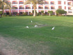 Во-первых, огромная, зеленая, ухоженная территория с аквапарком, магазинами, тренажорным залом и множеством бассейнов. Очень красиво. До моря идти 7 - 10 минут, или на паровозике, который ходит каждые 45 минут.