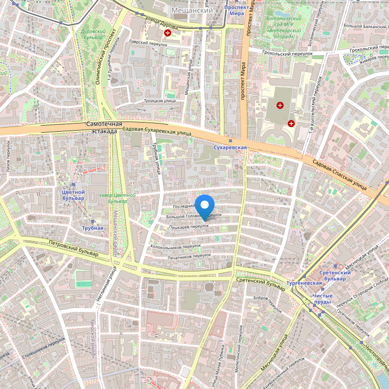 Прекрасно развитая транспортная инфраструктура позволит нашим гостям быстро и удобно добраться в любую точку Москвы. Остановки общественного транспорта и три станции московского метрополитена – Сухаревская, Цветной бульвар и Трубная, расположены в удаленности от 400 до 800 метров от отеля.