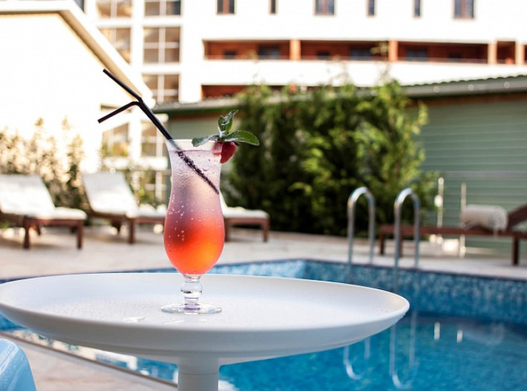 К услугам гостей внутри двора имеется бассейн глубиной 1 м 60 см и длиной 8 метров, который оснащен системой безопасной ультрафиолетовой очистки и расслабляющими противотоками для комфортного пребывания в бассейне как взрослых, так и детей. Благодаря устройству искусственного течения создается ощущение бесконечности бассейна.