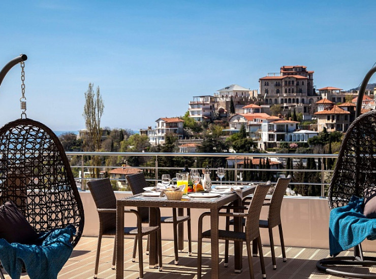 Номера нашего бутик-отеля представлены стандартными номерами первой категории и номерами класса люкс. Концепцией и приоритетом нашего отеля является уют и комфорт домашнего очага, спокойный и размеренный отдых. Теплая атмосфера гостеприимства ожидает Вас в новых комфортабельных номерах, оборудованных всем необходимым для приятного отдыха в одном из самых излюбленных мест творческой интеллигенцией. Из окон нашего отеля открывается очаровательный вид на район старого Гурзуфа, природоохранный заповедник «Гора Балгатура», море и Главную гряду Крымских гор (Гурзуфская яйла).