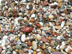 Много где написано, что пляж песочный, но это не совсем так. Там где стоят лежаки, которых всем хватало, так же как и места под навесами, крупный песок, а при входе в море мелкая галька.