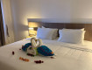 Сначала нас поселили в номер с видом на проезжую часть, пруд и частично море - но ночью очень шумно от транспорта, как же не работал гигиенический душ и телевизор. На следующий день попросили и нас пересилили в номер с видом на внутренний двор, стало тише....