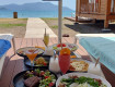 Первое это пляж. Вода очень холодная, из-за впадающей в море, прямо у пляжа, горной речки. Можно купаться рядом, за речкой, но там тоже вода прохладная и полосами-то холодная, то не очень. Море постоянно волнистое, особенно после обеда. Вход в...