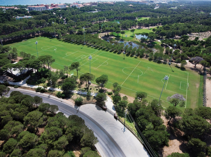 Отвечающие стандартам FIFA 3 профессиональных футбольных поля размером 110 м x 68 м и одно тренировочное. Поля покрыты специальным типом газона Bermuda 419''. Для каждого поля предусмотрена 4-х прожекторная система освещения. Поля оснащены системой дренажа и автоматической системой орошения, отвечающими стандартам FIFA, и беговой дорожкой шириной 3 м и длиной 800 м (вокруг поля).