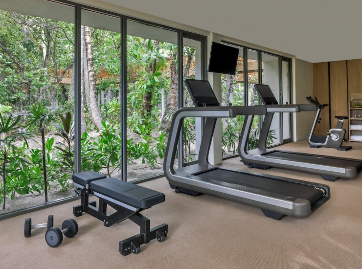 Потренируйтесь в светлом и просторном зале ссовременным оборудованием Technogym и панорамными окнами с видом на окружающие зеленые пейзажи.