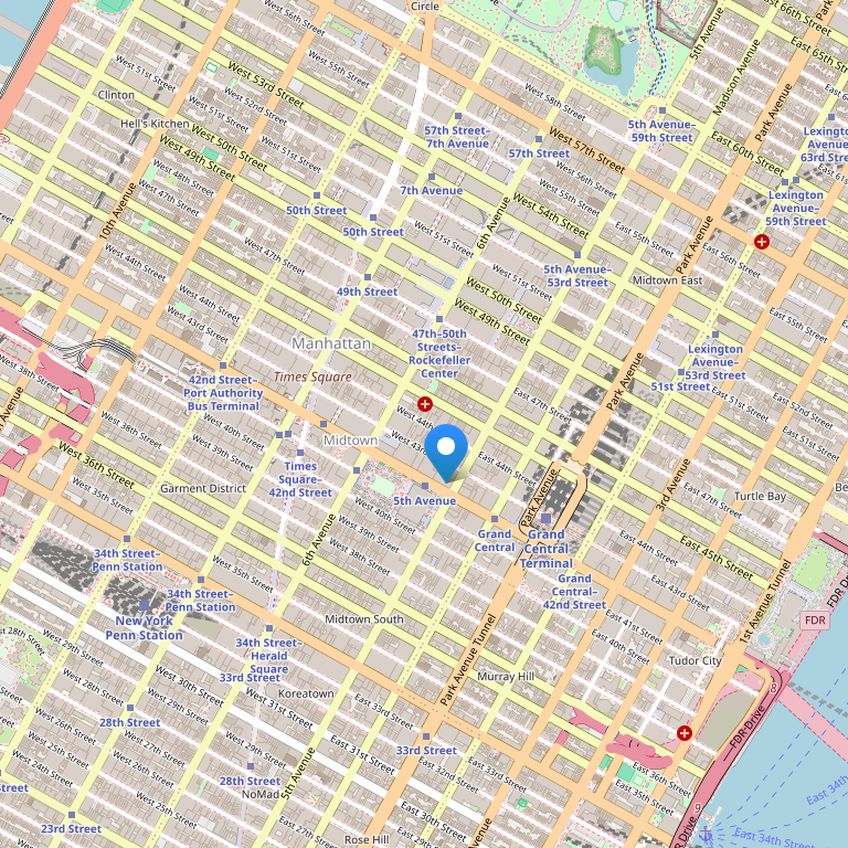 Отель расположен на 125 WEST 45TH STREET, в центре Times Square. QT находится в нескольких минутах ходьбы от Рокфеллер-центра, Radio City Music Hall, Музея Современного искусства, собора Святого Патрика, Empire State Building, Центрального парка, а также магазинов 5-ой Авеню.