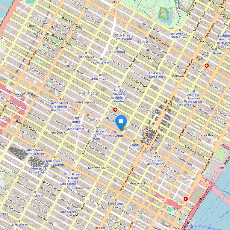 Расположенный на Мэдисон авеню и 45th Street, в Midtown Нью-Йорк, отель был назван в честь президента Теодора Рузвельта. Roosevelt находится вблизи Большого Центрального вокзала, JFK, Newark Liberty International и LaGuardia аэропортов и многих других достопримечательности Нью-Йорка.