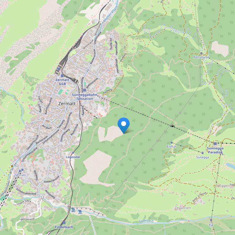 Отель находится рядом с фуникулером, идущим к лыжной зоне Sunnegga, откуда можно спуститься на лыжах прямо к порогу отеля.