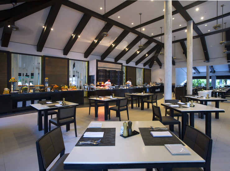 Континентальная и азиатская кухни в непринужденной, даже интимной обстановке. Под пальмами Вы найдете желанную тень. Попробуйте свежие местные фрукты и соки из нашего бара, и Вы почувствуете себя заново рожденным после купания в лучах утреннего света. Полюбуйтесь лазурным, простирающимся у Ваших ног, океаном.