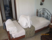 Номер: Стены и потолок окрашены, но минимум 6 лет назад, поэтому имеют серо-голубой и серо-белый цвет. Огромный кондиционер покрыт слоем пыли. В двух углах под потолком замечена неубранная паутина. Два дня отсутствовала горячая вода. Душевая кабина протекала, держатель для душа сломан. Единственный очевидный плюс - близкое расположение номера к морю.