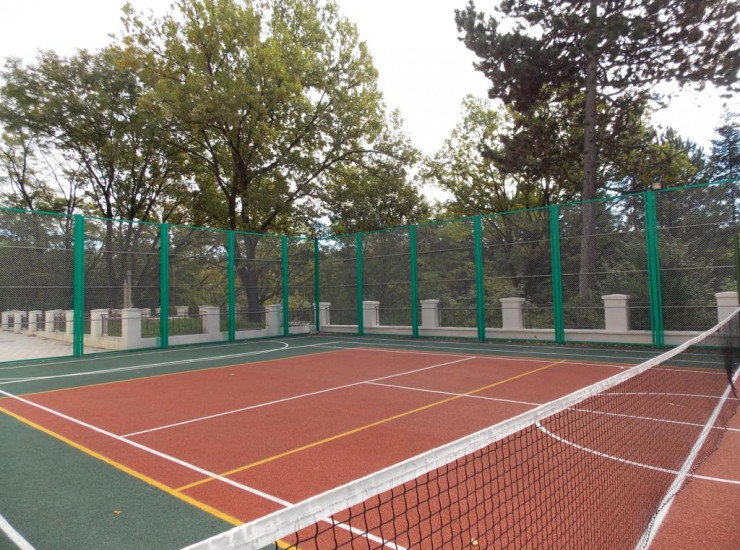 На территории санатория расположена универсальная спортивная площадка/теннисный корт с полиуретановым покрытием. Гости санатория могут поиграть в большой теннис, волейбол, мини-футбол на профессиональном покрытии. Ежедневно проводятся турниры и соревнования.