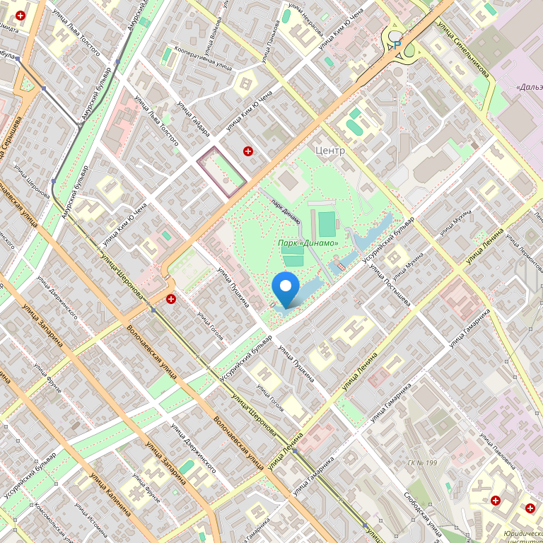 Отель расположен в самом центре Хабаровска. Рядом – городские пруды, главная площадь – площадь Ленина, театры и музеи. Центральный железнодорожный вокзал — 10 минут, международный аэропорт — 20 минут на машине.