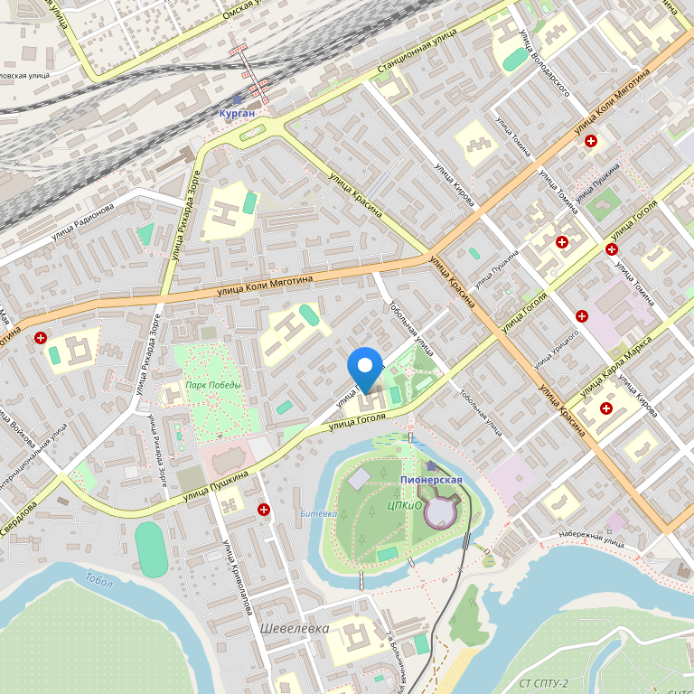 Отель расположен в самом центре города Курган, в парковой зоне, в 5 минутах от ж/д вокзала и 20 минутах езды до аэропорта.
