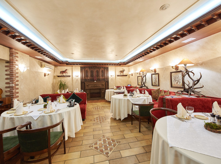 В 2010г. ресторан Охотников был премирован как лучший ресторан при гостинице. Так же в отеле есть уютный бар, где можно посидеть за бокалом восхитительного вина и чашкой ароматного кофе, а летом работает летнее кафе.