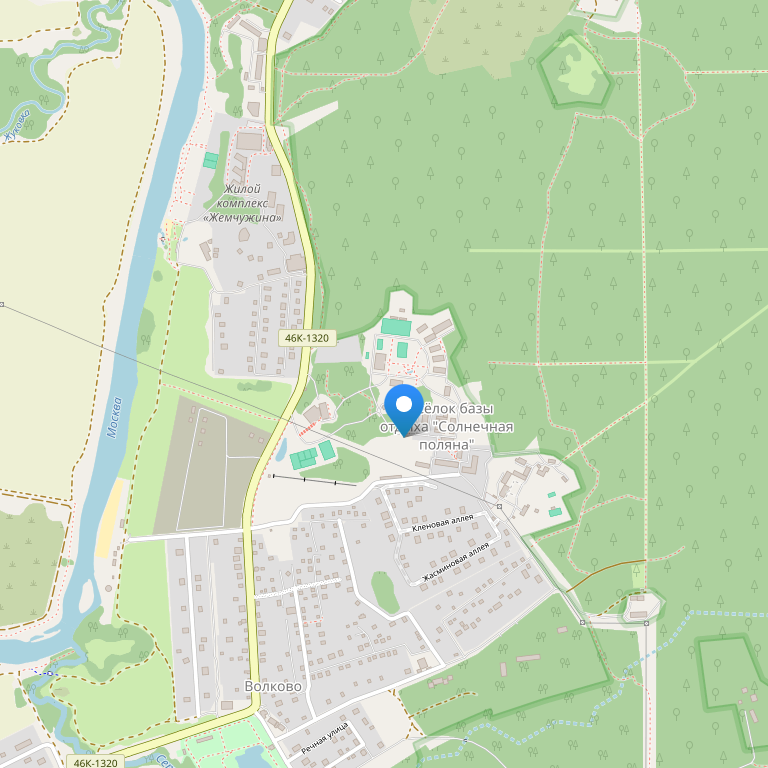 Пансионат Солнечная поляна расположен на благоустроенной территории, площадью 22 га, в живописном месте на склоне холма, с которого открывается прекрасный вид на окружающие просторы, берега Москва-реки и сосновый лес.