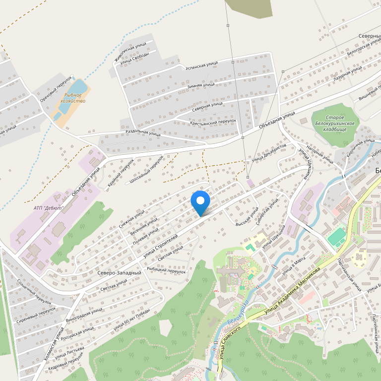 Отель расположен в городе Белокуриха, в тихом переулке, вдали от городской и курортной суеты. В то же время, до всех основных объектов инфраструктуры – магазинов, баров, ресторанов, курортной зоны, можно добраться за 5-7 минут пешком или за 2-3 минуты на автомобиле.