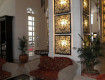 Территория есть небольшая, но на ней ничего нет, холл отеля темный, но просторный.