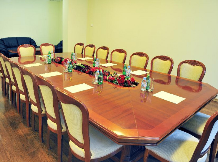 Вместимость комнаты переговоров - до 18 человек. Идеальное место для деловых встреч. Сдержанность и элегантность в оформлении комнаты создает ощущение уединенности, но в то же время сохраняет официальную атмосферу.