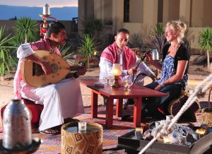 Расслабьтесь на низких сиденьях и традиционных коврах, наслаждаясь региональным шишой, чаем, кофе и живой восточной музыкой. Традиционный иорданский зарб (запеченный ягненок) может быть специально подготовлен нашими шеф-поварами для групп по меньшей мере 25 человек.