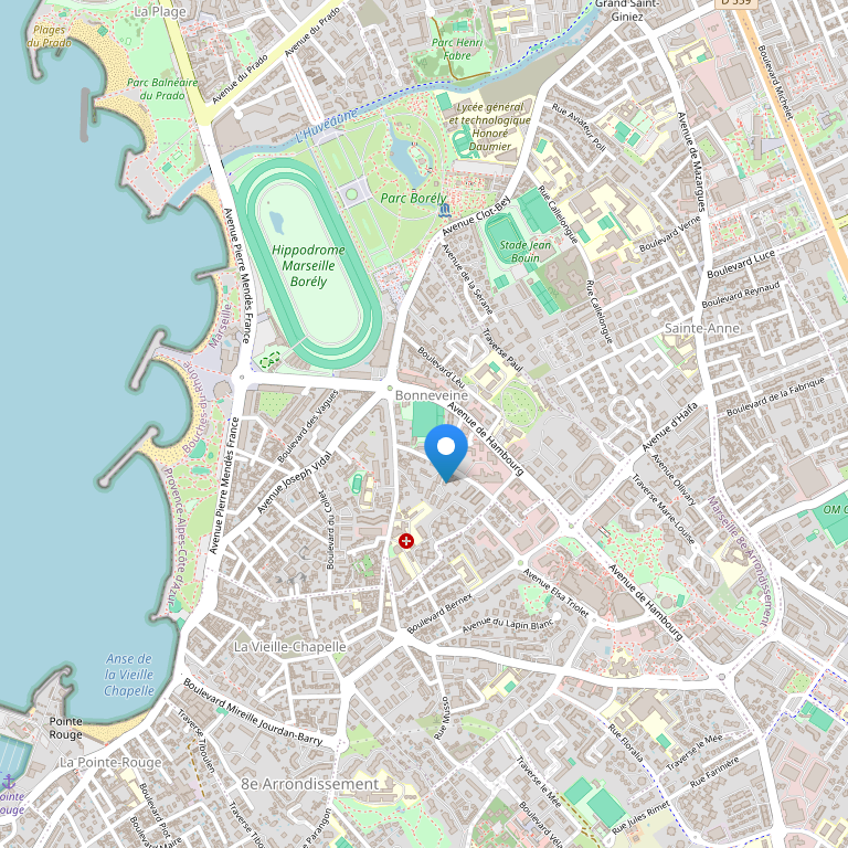 Множество развлекательных мест доступны недалеко от отеля: туризм, альпинизм, прокат велосипедов, верховая езда, водные виды спорта и частные пляжи, ипподром и поле для гольфа с видом на море, великолепный парк Borély (17 га садов, большое озеро и розарий), а также беговые дорожки, катание на роликах, детские игры, и многое другое.