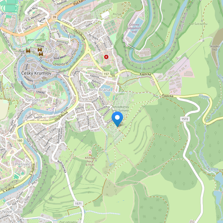 - недалеко от дороги 157, по направлению Ч. Крумлов-Каплице;