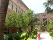 Территория отеля маленькая, но чистая, даже есть детский уголок с горкой и домиком)