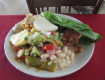 Еда: рис, макароны, картошка, помидоры, огурцы, зелень, курица и иногда рыба, ну...