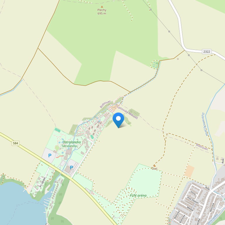 Аквапарк Tatralandia расположен неподалеку от города Липтовский Микулаш, на северном берегу водохранилища Liptovská Mara, неподалеку от Ясна.