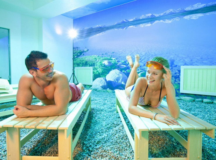 Солнечный пляж - уникальное SPA-пространство, которое дарит ощущение летнего отпуска даже в самые пасмурные и холодные дни, обеспечивая при этом не только эстетический, но и оздоровительный эффект. Свет ламп фотария имитирует воздействие солнца, в отличие от солярия не имеет в своем спектре вредного излучения.