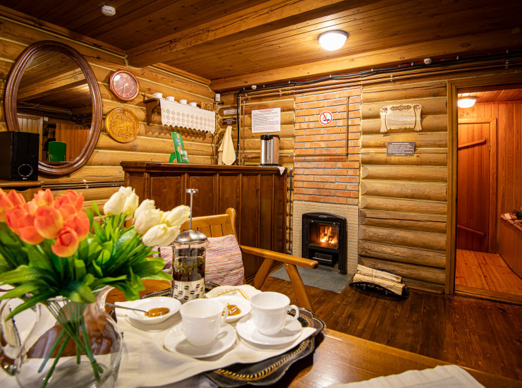 - русская баня для любителей традиций париться со свежим березовым веником (ТВ, караоке, комната отдыха, мини-бар, фиточай с медом, купель с ледяной водой.) Дополняется традиционной русской процедурой массажем с различными видами масел, медом и мыльной пеной