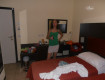 НОМЕРА- маленький,но уютный,чистенький,все новенькое,евро ремонт.отличный санузел.даже биде есть,душевая кабинка,горячая-холодная вода,кондиционер,сейф,плоский телевизор.....только не нашли на нем каналов с музыкой и балконы есть только в 6-ти номерах... в нашем не было,но мы не страдали...убирали каждый день,вроде меняли...