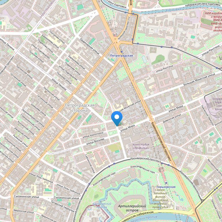 5 минут от метро Петроградская.