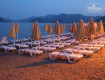 Этот отель расположен на 1-ой линии, имеет свой собственный пляж бесплатный, а до пляжа 10 секунд. Пляж небольшой, но всегда были бесплатные лежаки. Вход в море - хороший. Волн в Мармарисе практически не бывает, так как это закрытая бухта. Плжяные зонтики этого отеля - зеленого цвета! За пляжем присматривает `бич-бой`, который предлагает напитки - свежевыжатый...
