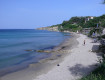 Пляжа, как такового нет, но стоят лежаки на зеленой травке, где очень приятно загорать. К морю спуск по маленьким ступенькам - и ты у пирса. Спускаешься- глубина сразу по грудь. Море чудное!...