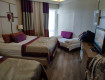 Регистрация довольно оперативно - 30 мин и наши чемоданы поехали в корпус Парк. Номера в корпусе старые с лёгким косметическим ремонтом, ничего критического, жить можно )). В номере холодильник (ежедневно пополняется пивом ,соками, вкусншками),сейф, ванна (не душевая кабина). Номер поменьше, чем стандарт в Дельфин Би гранд, но для 4-х человек...