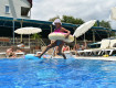Отель еще только открывался, людей было мало, по территории работали еще ремонтные бригады (клеили таблички на корпуса, мелкие ремонтные работы проводили, сцену анимации оформляли и т.п.). Работал только первый бассейн и без водопада, анимации еще не было, но для молодежи они устраивали дискотеку до 23:00.
