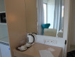 2. Номера. Нас поселили в новом корпусе на 4-м этаже с видом на море и бассейн. Шумно не было, вид хороший. НО номер малюсенький, шкаф никакой с постоянно соскакивающими дверями-купе (пользовались очень бережно). Ко всему прочему в этом шкафу зачем-то...