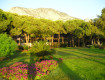 Отель располагается на весьма значительной (по Турецким меркам) территории, с большим количеством сосен, каждая из которых имеет на своем столбе табличку с номером. За счет большого числа деревьев территория отеля получилась весьма тенистой, что было очень приятно в дневную жару.