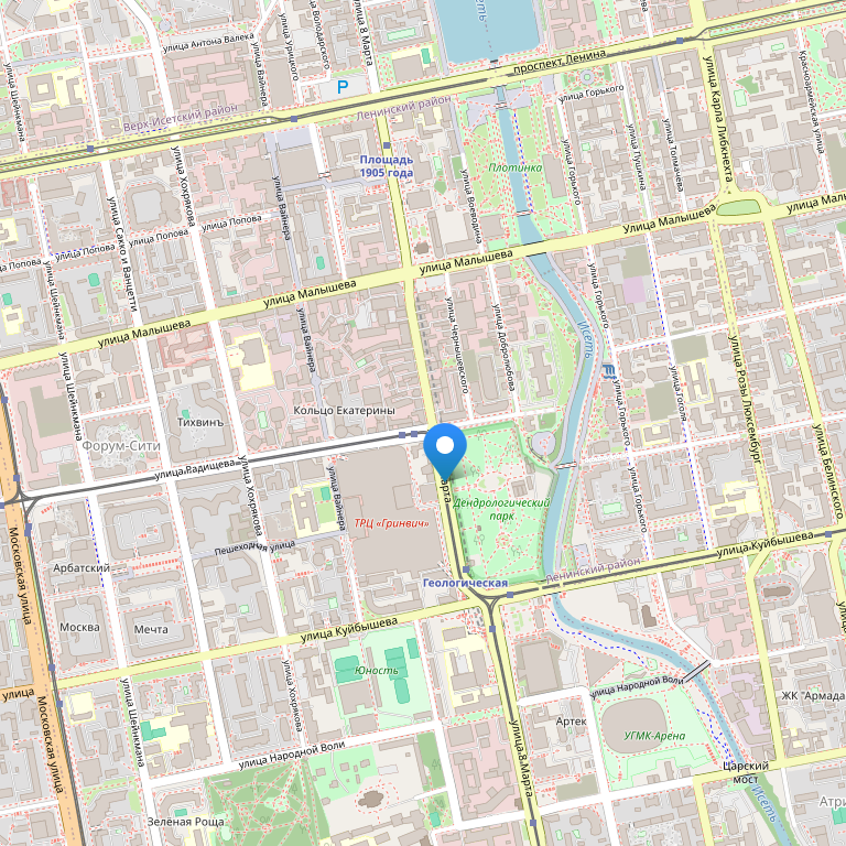 Фасадом отель обращен к городскому дендрарию и расположен рядом с крупнейшим в Екатеринбурге торгово-развлекательным центром Гринвич, и пешеходной улицей Вайнера. Аэропорт Екатеринбурга Кольцово 20 км, ж/д вокзал Екатеринбурга 3 км.