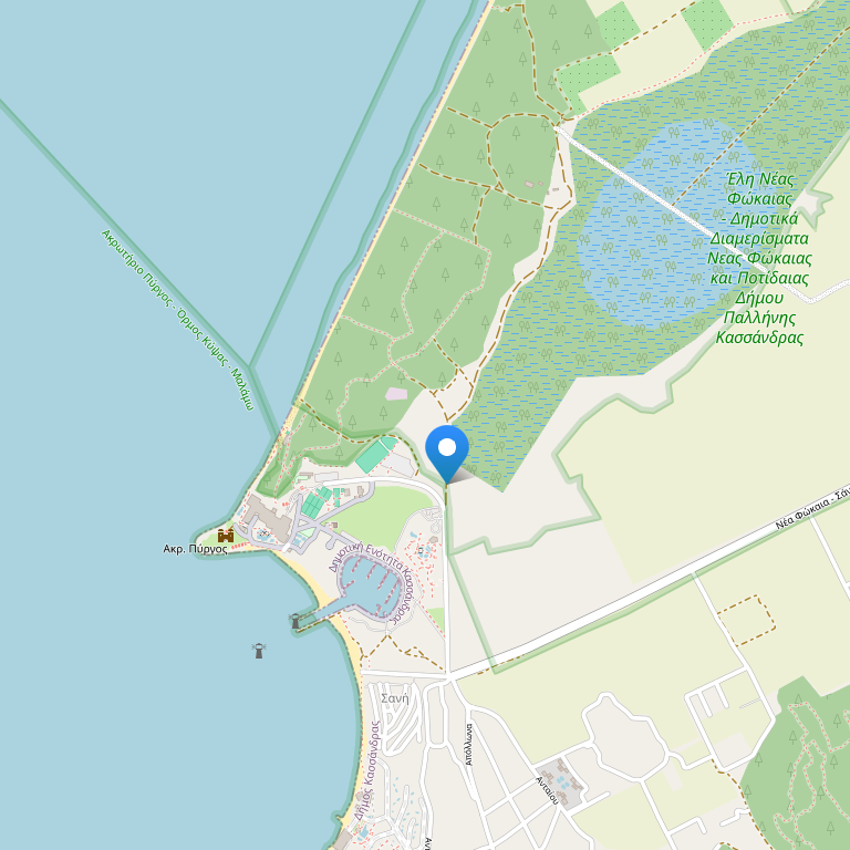 Отели SANI расположены на полуострове Кассандра, на самом западном из трех пальцев полуострова Халкидики. Расстояние домеждународного аэропорта Македония в городе Салоники80 км. На автомобиле дорога занимает 45 минут, на вертолете 8 минут.