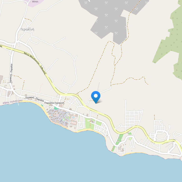 Отель расположен на п-ове Ситония, п. Геракини, в 10 км от посёлка Ормилия, в 14 км от г. Неа Муданья, в 14 км от г. Полигирос, в 70 км от аэропорта Македония г. Салоники.